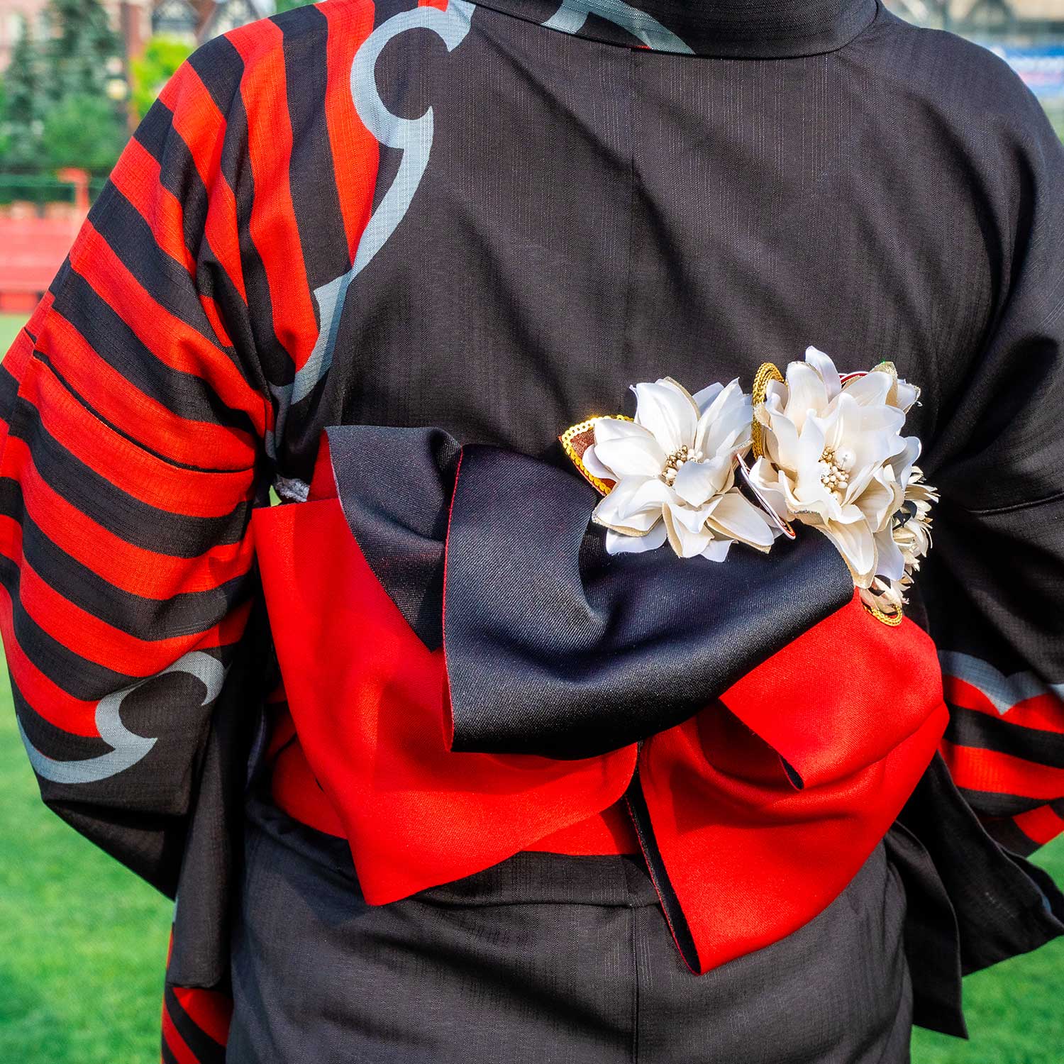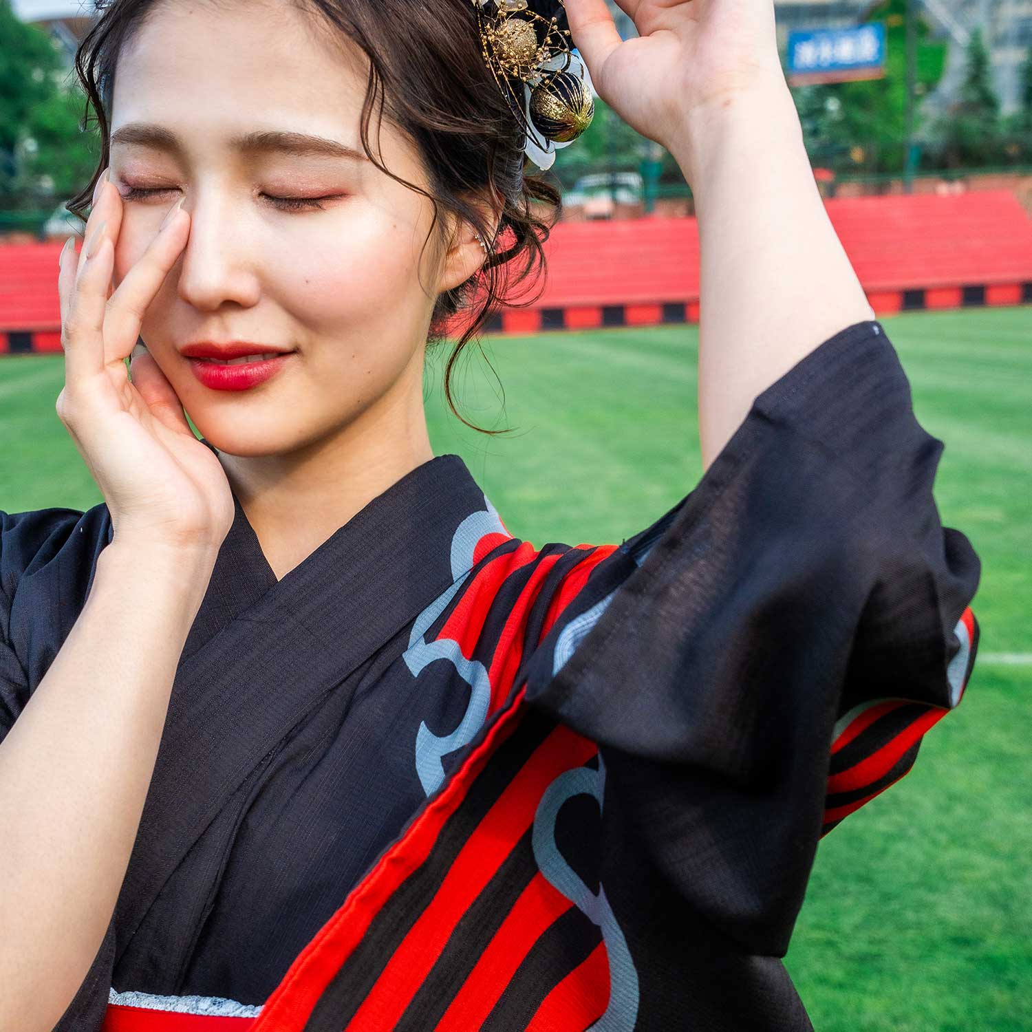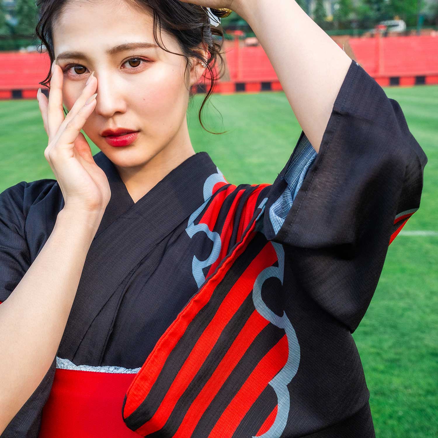 コンサドーレ札幌との特別コラボ、鮮やかな赤が印象的な浴衣です。