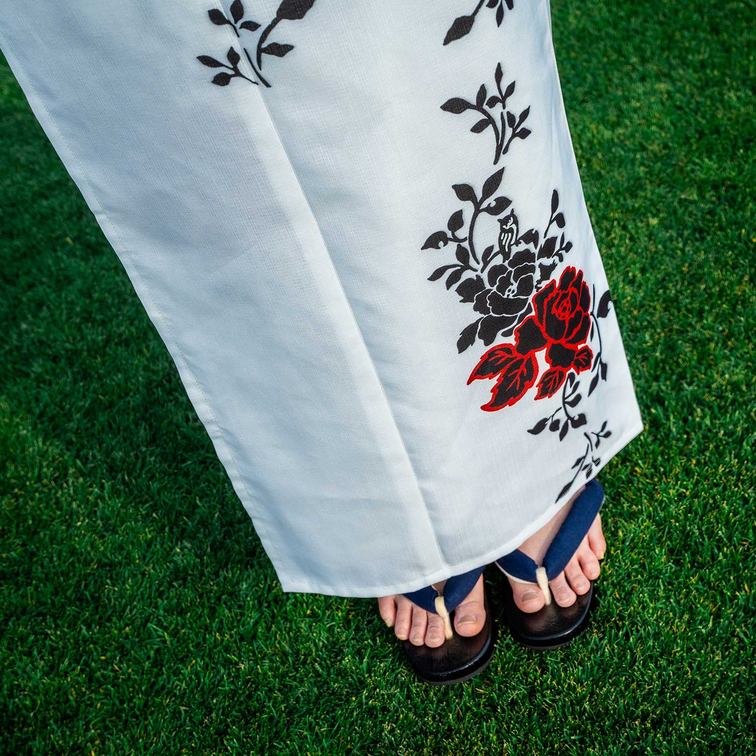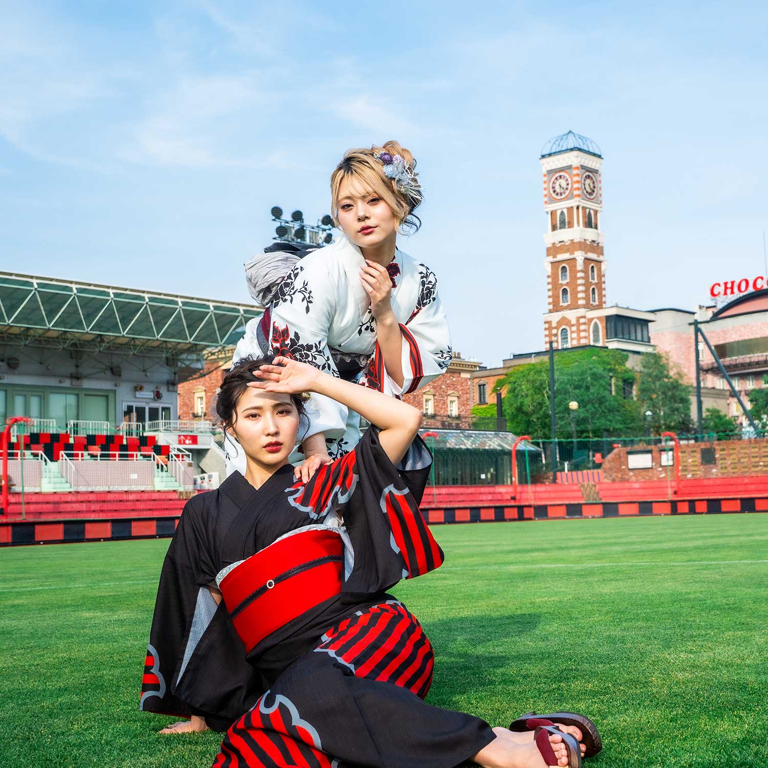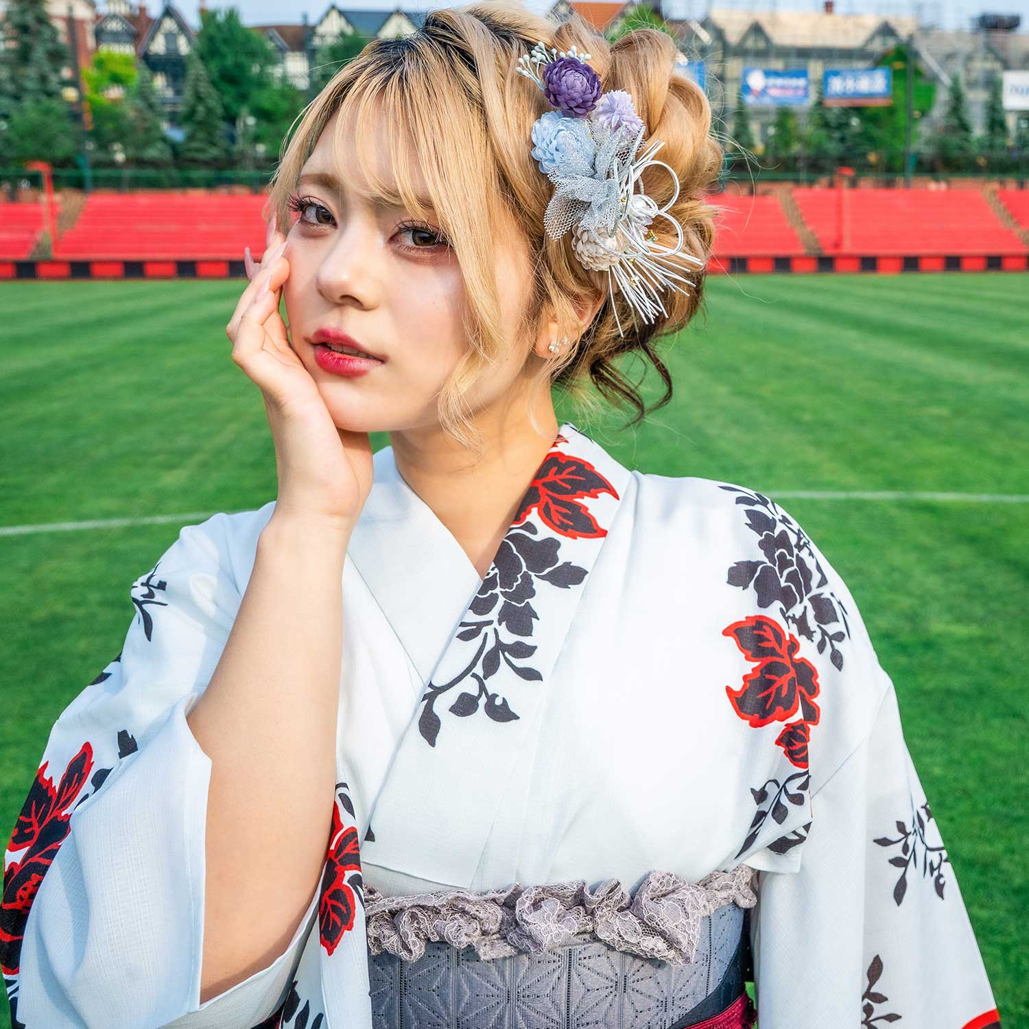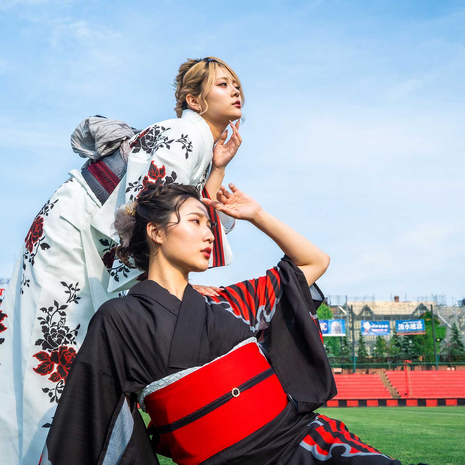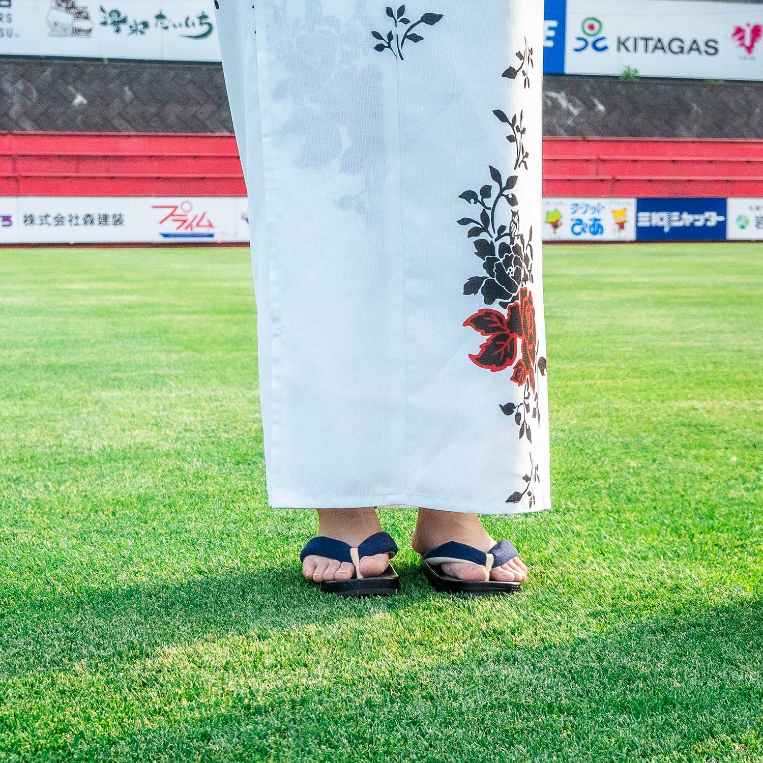 動くたびに揺れる浴衣の裾が軽やかで、光に映える清らかな白が夏の空気に映えます。コンサドーレファンとしての気持ちをさりげなく表現できるのも魅力のひとつです。